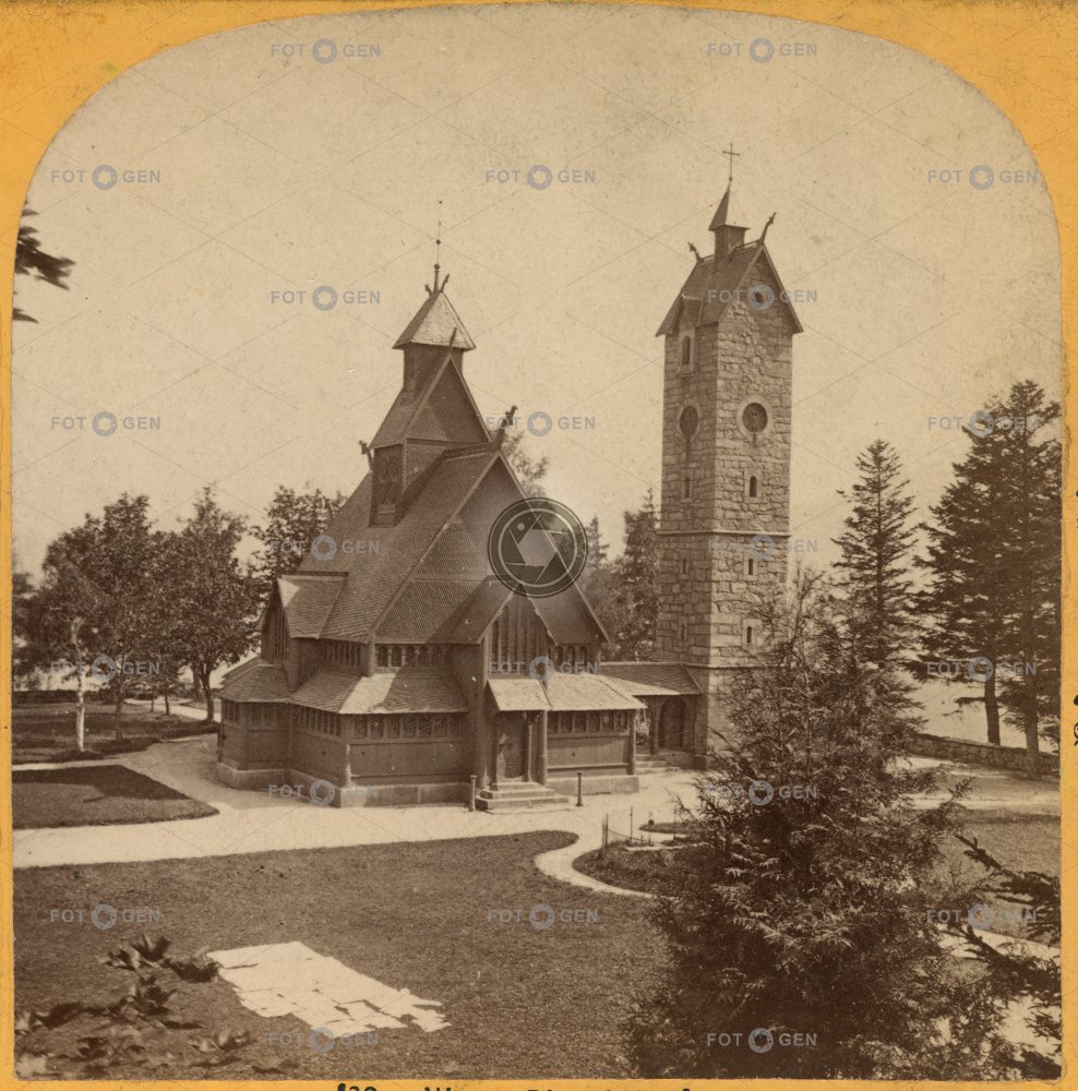 celkový pohled dřevěný general view Giant Mountains church Karpacz kostel Krkonoše místopis Riesengebirge Świątynia Wang topography Wang wooden