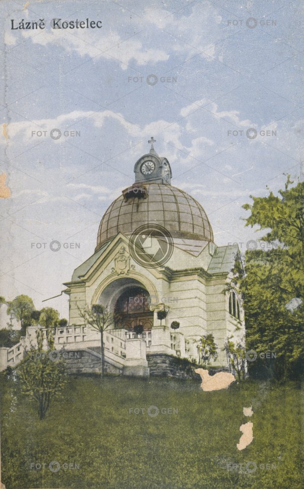 barevná clock color colored fürdő hodiny chapel kaple kolorovaná Kostelec Kostelec u Zlína kúpel Kurort lázně místopis neexistující neexistující budova neexistující objekt neexistující stavba nonexistent building Paraklisa spa topography Zlínský kraj
