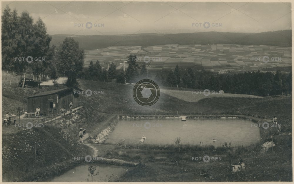 1942 bazén bazény Böhmisch Česká Česko kabinky kopec koupaliště Kozlovský leisure místopis republika swimming pool topography Trübau Třebová volný čas
