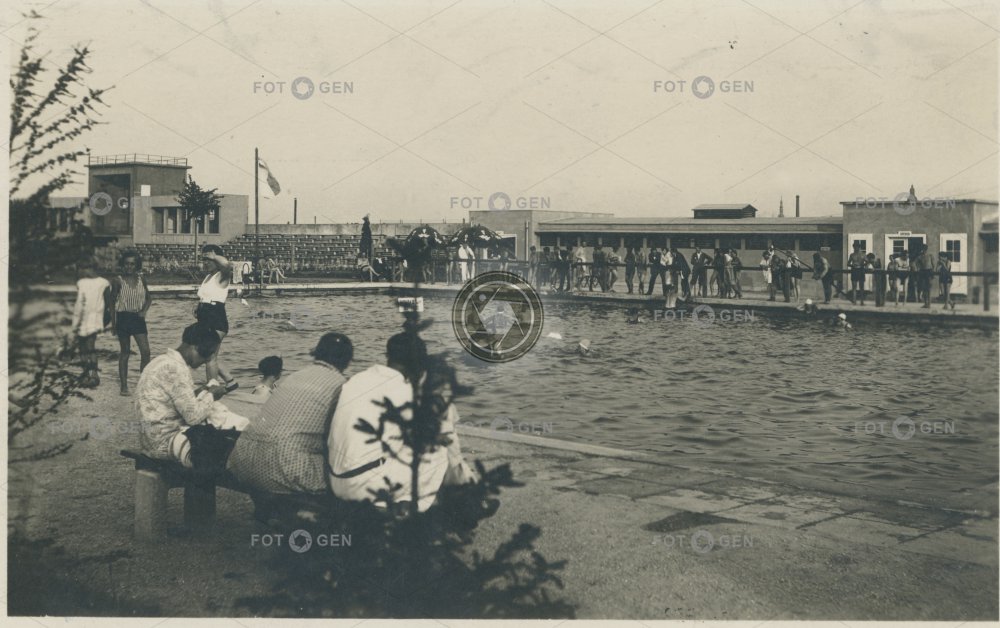 1929 alive bazén bazény kabinky koupající koupaliště leisure lidé místopis plavci pláž Prostějov republika swimming pool topography volný čas živá