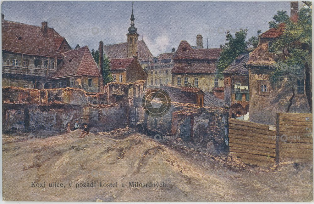 art asanace autotypie barevná bourání colored demolice demolition church Jewish town Josefov Judaism Judaismus kolorovaná kostel kostel u Milosrdných Kozí Kozí plácek místopis neexistující neexistující objekt nonexistent building Old Town polotón Prague Praha redevelopment Staré Město The Clearance of Josefov topography U milosrdných umění židovské město