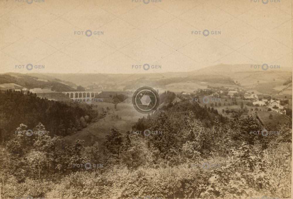 Krajina od Sychrova. Dobový popis: Sichrov.Panoráma hornolesné krajiny od zátiší korunního prince Rudolfa. asi 1887, kabinetka