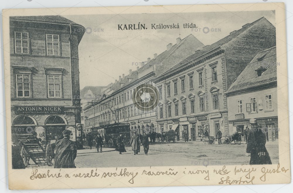 1906 Antonin Nicek barrow dvoukolák Karlín Královská místopis Prague Praha Praha 8 Sokolovská Sokolovska street topography tram tramvaj