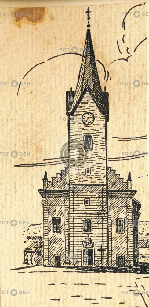 drawing church Kirche kościół kostel kostel sv. Filipa a Jakuba kresba místopis topography Zlín Zlínský kraj