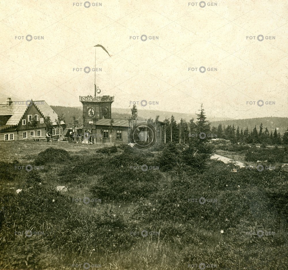Black huts bouda Černá hora Černé boudy forest Giant Mountains hut kleč kneel krajina Krkonoše Landscape les lookout tower mast místopis Riesengebirge rozhledna Schwarzschlagbaude stožár topography