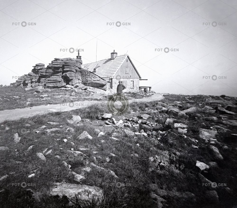 bouda U sněžných jam cesta hut krajina Krakonošova kazatelna Krkonoše Landscape leisure místopis observer pozorovatel pulpit Riesengebirge road topography tourist turista volný čas