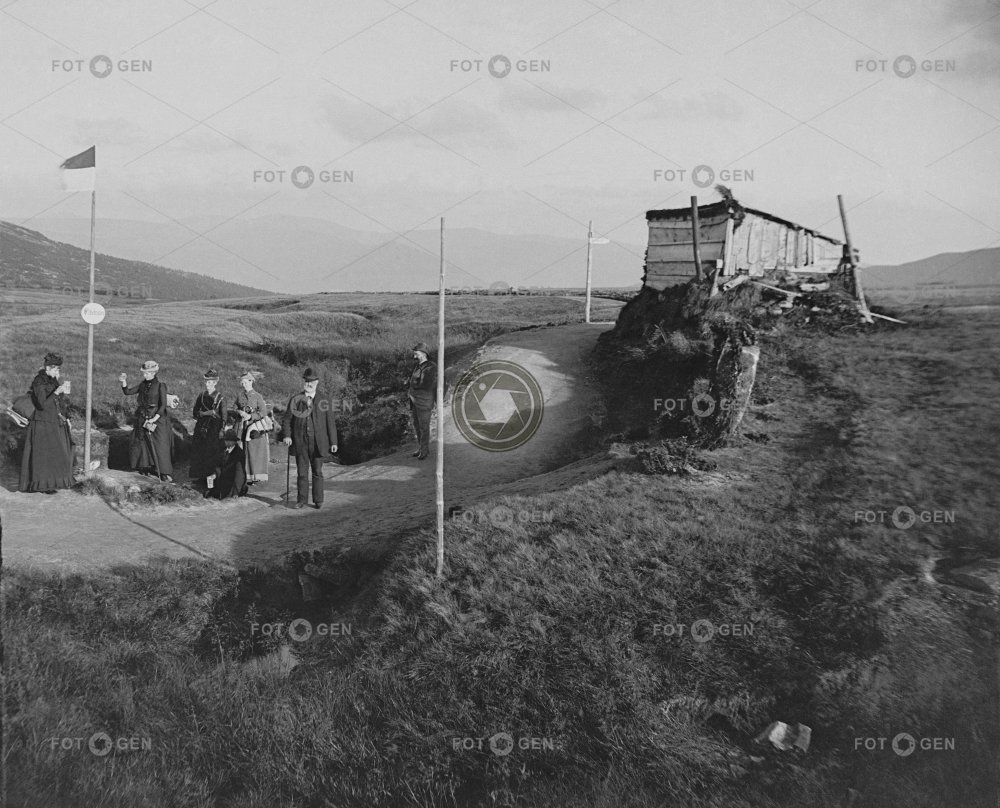 bouda cedule cesta cestovní oděv Elbe Giant Mountains hut journey Krkonoše Labe leisure místopis pole pramen Riesengebirge sign Spring topography tourism tourists travel clothes trip turismus turisté turistika tyč volný čas výlet