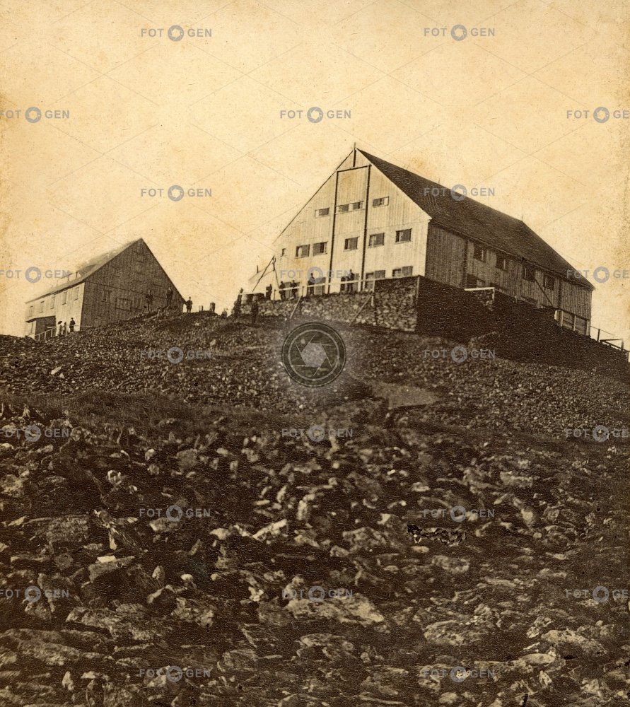 bouda Czech hut Česká bouda hut krajina Krkonoše Landscape místopis peak Pruská bouda Prussian hut Riesengebirge rock rubble Schneekoppe Silesian hut skála Slezská bouda Sněžka Śnieżka suť topography vrchol