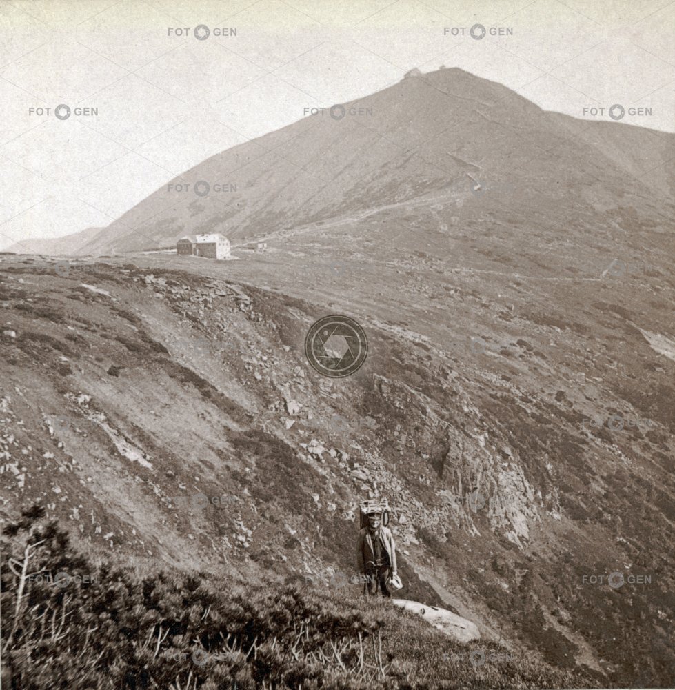 ascent carrier Giant mine Giant Mountains hora kleč kneel krajina Krkonoše Landscape místopis mountain nosič Obří důl práce Riesengebirge Schneekoppe Sněžka topography výstup work