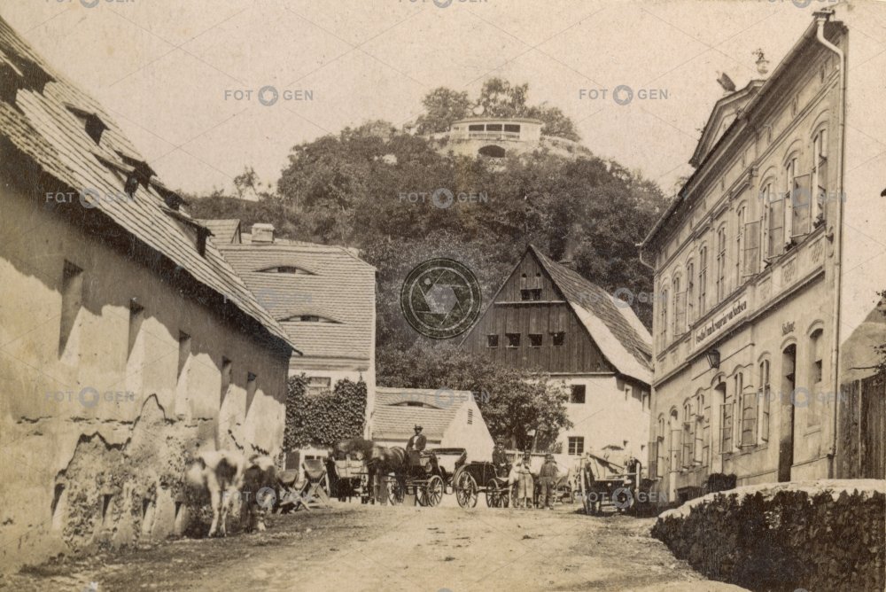 carriage Graupena horse hotel U korunního prince saské Krupka kůň místopis povoz street topography ulice