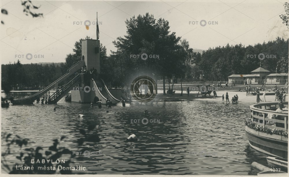1937 Babylon bath bazén bazény Domažlice fürdő koupající koupaliště kúpel lázně leisure lidé místopis plavci pláž plovárna pool skluzavka swimming topography volný čas