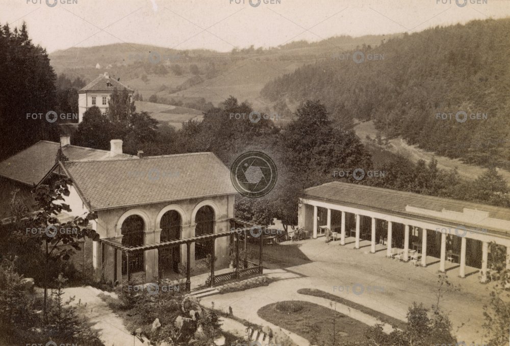 Bad Gießhübl bird's eye view forest garden Kursalon Kysibl lázeňský dům Lázně Kyselka les místopis ptačí perspektiva spa house Spa Kyselka topography zahrada