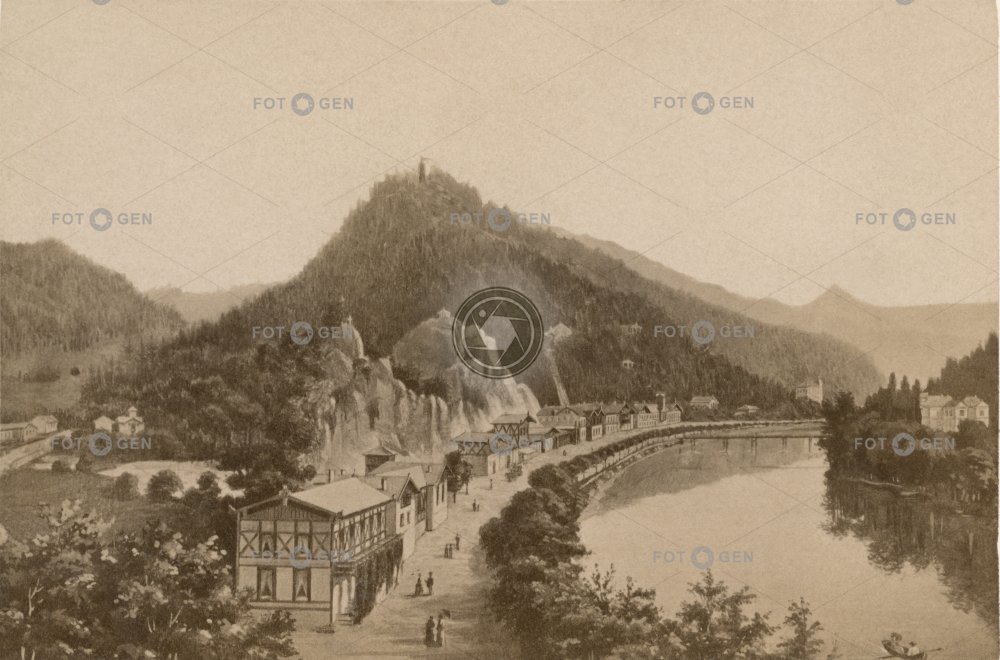 celkový pohled general view Giesshübl-Puchstein lázně Lázně Kyselka místopis promenáda promenade river řeka spa Spa Kyselka topography