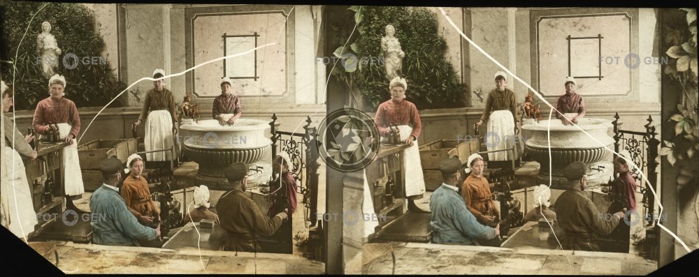 apron bottle filling cap coloring čepec damage Giesshübl kolorování Kysibl lázně Lázně Kyselka mineral water minerálka místopis pavilion Pavilon plnění lahví poškození práce pracovní oděv pracovní skupina spa topography voda minerální women's work work work clothes working group zástěra ženská práce