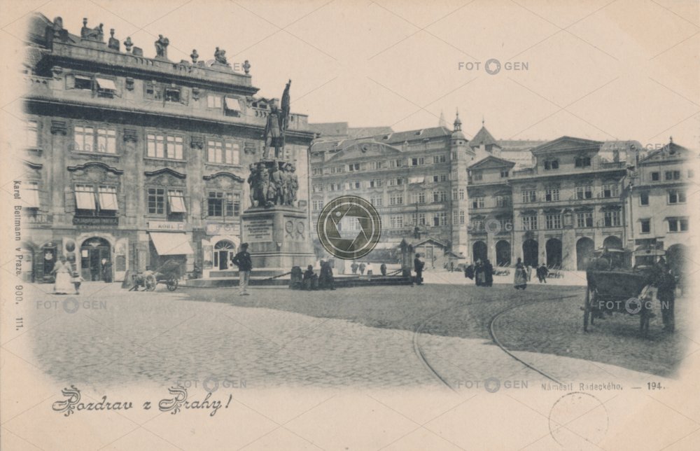 barrow dvoukolák empír Grömlingovský palác Karel Bellmann Lesser Town Lesser Town Square Malá Strana malostranské Malostranské náměstí místopis náměstí pomník pouliční Prague Praha Radeckého ruch socha topography