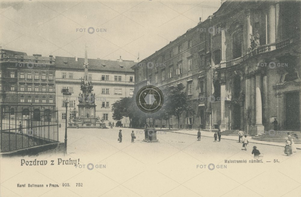1903 church kandelábr Karel Bellmann kostel lamppost Lesser Town Lesser Town Square Malá Strana Malostranské náměstí místopis morový sloup Plague Column pouliční osvětlení Prague Praha street lamp sv. Mikuláše topography