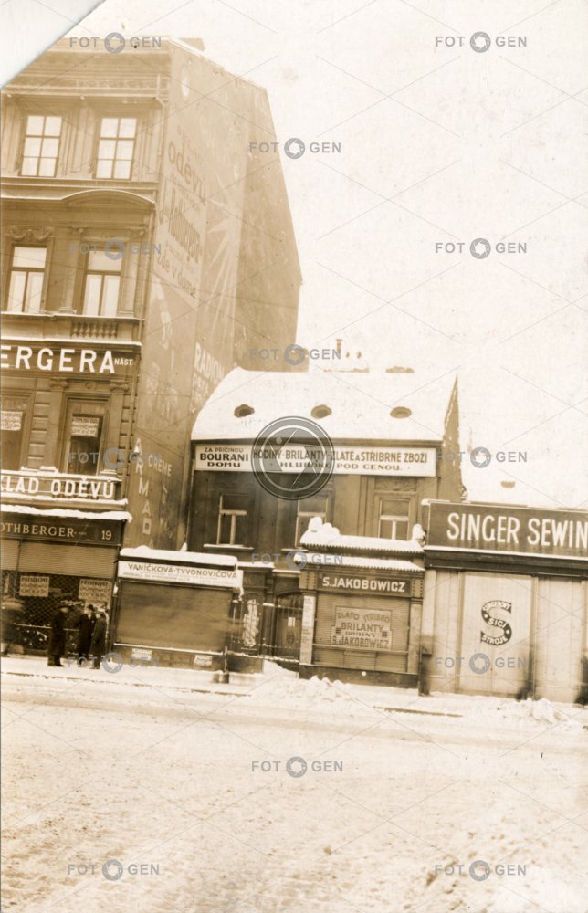 Geschäft hodiny místopis Na Příkopě neexistující non-existent obchod Prag Prague Praha Příkopy S. Jakobowicz shop sklep sníh snow stříbro Svatý Kříž topography üzlet winter zima zlato