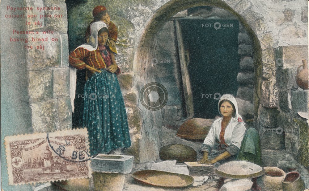 baker bakery barevná bread clothes color colored dámské děti dítě dress ethnology etnologie Frau frock children chléb chleba Kinder kolorovaná místopis oblečení orient orientální pečení pekárna pekařka práce roast sâj Syria Sýrie šaty topography tradiční šaty traditional dress woman work žena ženy