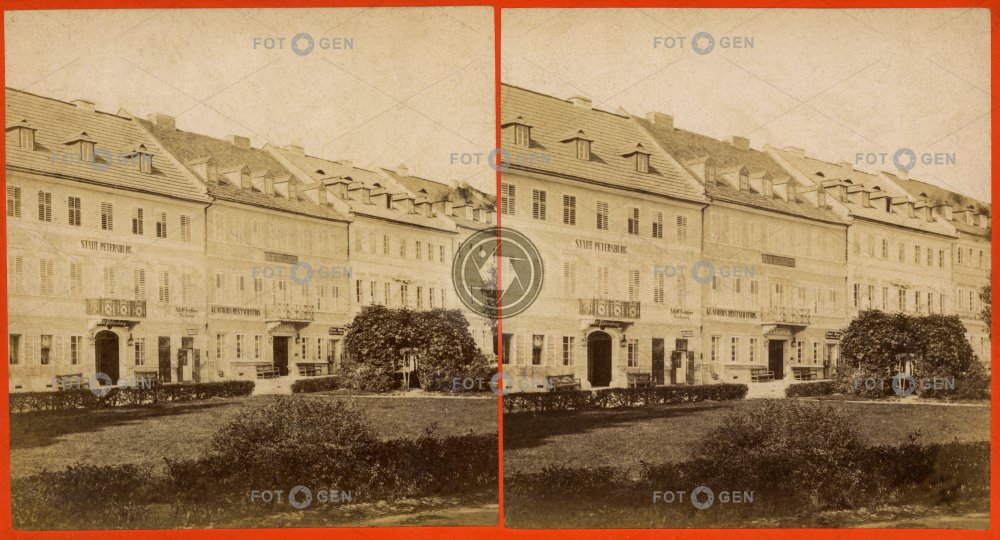 balcony balkon Císařská ulice garden hotel imperial street Kaiserstrasse lázně Mariánské Lázně Marienbad místopis restaurace restaurant spa Stadt Petersburg topography zahrada