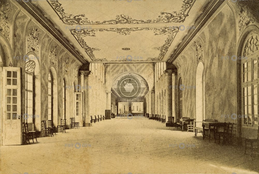 benches Hlavní kolonáda chairs lavice lázně Main colonnade Mariánské Lázně místopis promenade hall promenádní sál spa stucco štuky topography židle