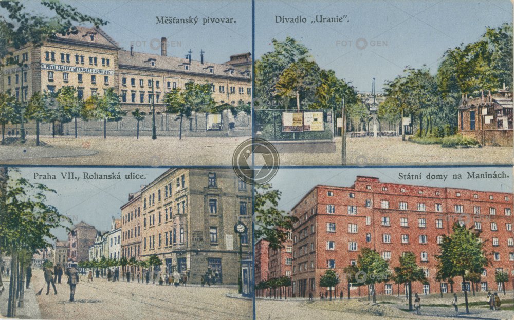 barevná brewery colored divadlo Holešovice kolorovaná Lidové divadlo Uranie Maniny měšťanský pivovar místopis Na Maninách pivovar Prague Praha Praha 7 Rohanská státní domy theater topography Uranie