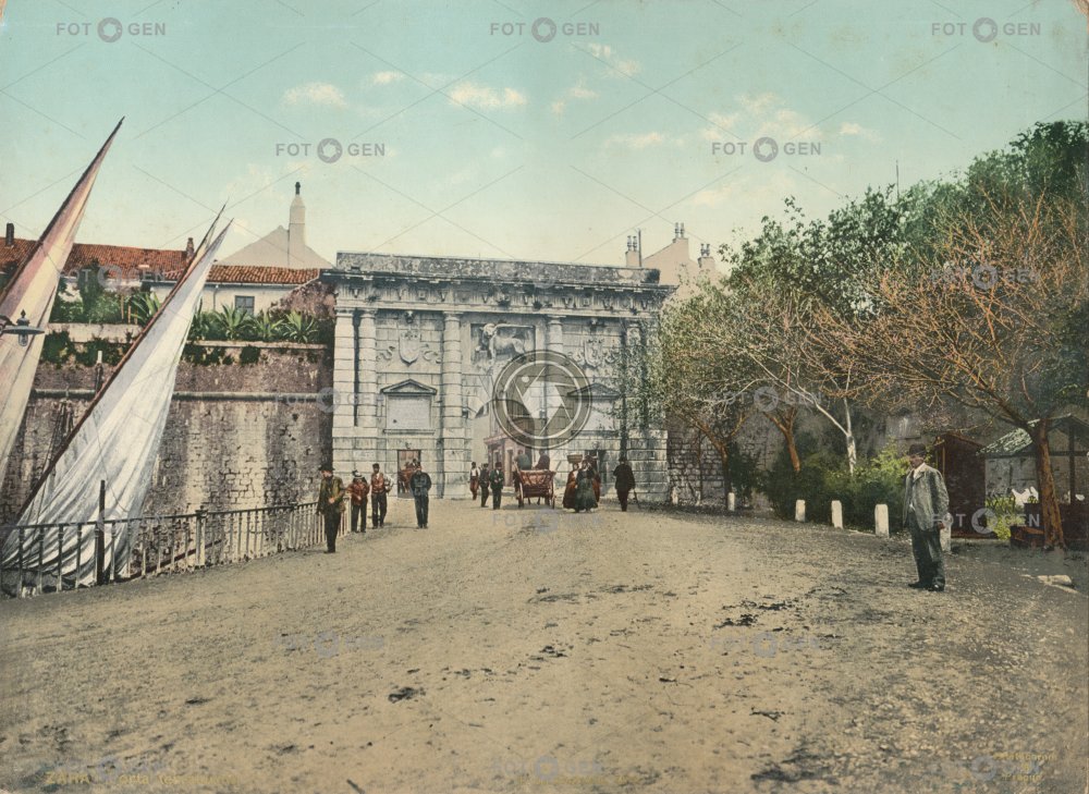 barevná brána color colored Croatia Dalmácie harbor Chorvatsko kolorovaná Kopnena vrata místopis Pevninská brána port Porta Terraferma přístav Renaissance renesance Sammicheli topography Zadar Zara