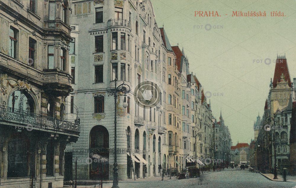 1909 barevná colored lighting Mikulášská místopis osvětlení Pařížská pouliční lampa Prague Praha street street lamp topography