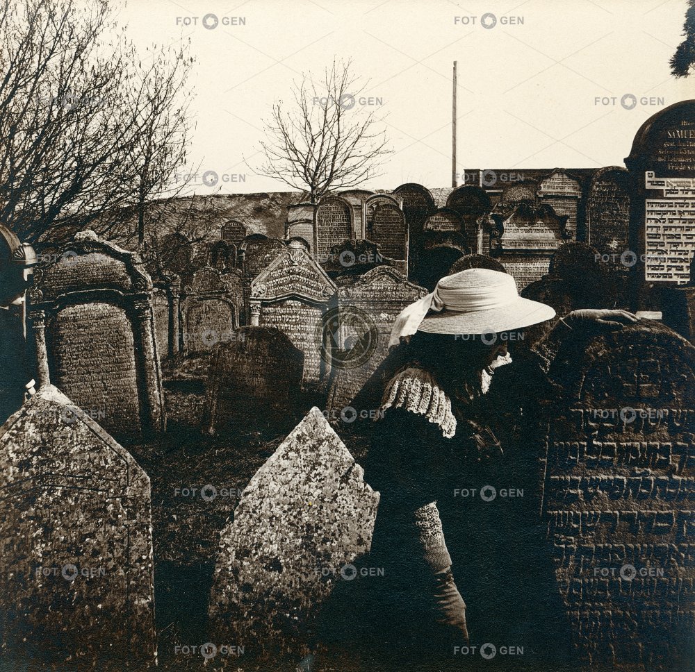 dívka girl Jewish cemetery Jews místopis Mladá Boleslav náhrobek remembrance slaměný klobouk straw hat tombstone topography vzpomínání židé židovský hřbitov