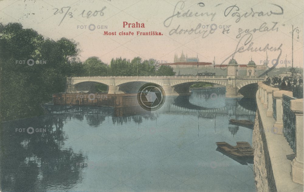 1906 barevná bridge císaře Františka color colored kolorovaná místopis most plovárna Prague Praha river řeka swimming pool topography Vltava
