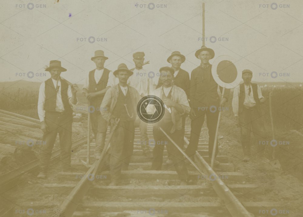 1912 construction dělníci doprava dráha employees hat koleje lidé man místopis práce rails staff topography transport trať vlak work zaměstnanci železnice železniční