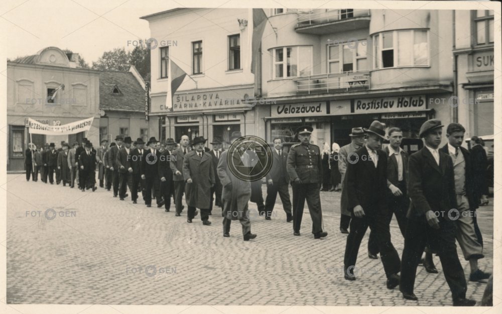 cafe confectioner's cukrárna cukrářství demonstrace demonstration event Geschäft hat kavárna klobouk lidé ludzie march Menschen místopis náměstí obchod people podchod Rožnov pod Radhoštěm shop sklep square topography událost uniform uniforma üzlet Zlínský kraj