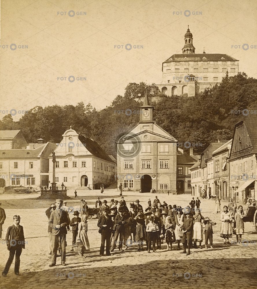 castle column curious děti children místopis Náchod náměstí observer pozorovatel radnice sloup square topography town hall zámek zvědavci