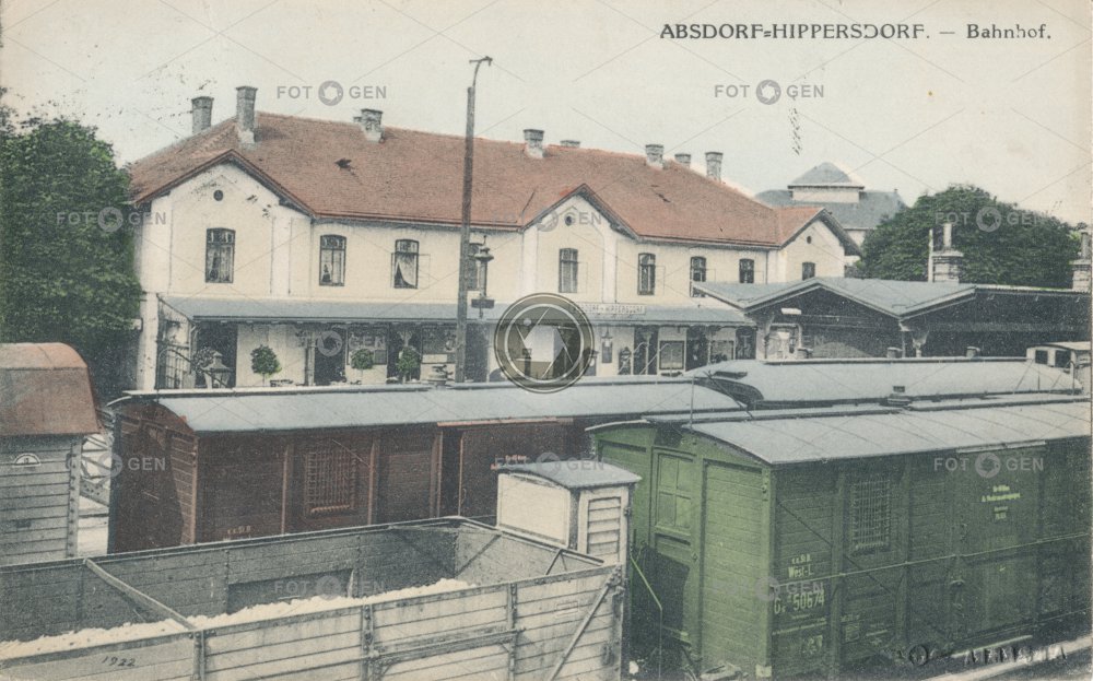 1913 Absdorf Austria Ausztria Bahnhof barevná budova Dolní Rakousy doprava dráha Hippersdorf kolorovaná místopis nádraží nádražní nákladní Niederösterreich Österreich pociąg Rakousko stacja kolejowa station topography train transport trať vagon vagony vasútállomás vlak vonat Zug železnice železniční