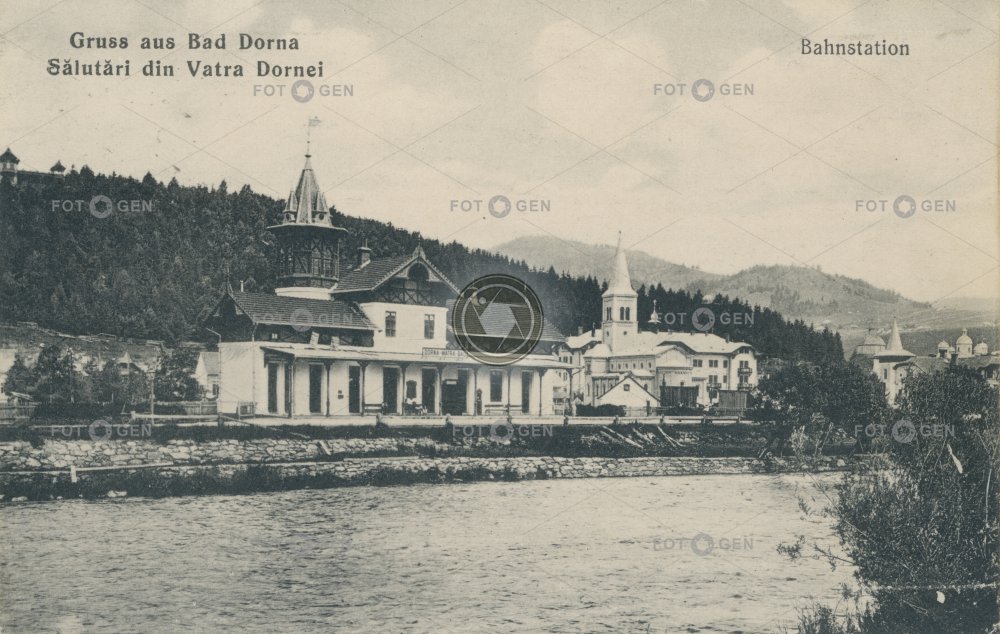 1914 budova Bukovina doprava Dorna Watra dráha church Kirche kostel lázně místopis monarchie nádraží nádražní railway railway station Rakouská Rakousko river Romania Rumunsko řeka spa stanice topography transport trať Vatra Dornei vlaková zastávka železniční