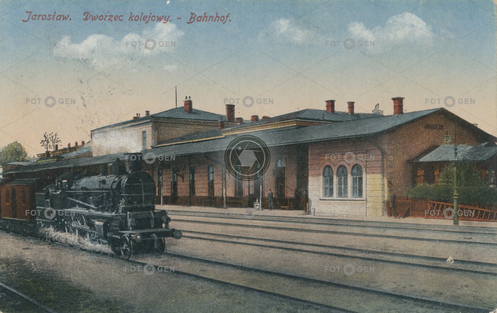 barevná colored doprava dráha Jaroslaw kolorovaná locomotive lokomotiva Lokomotive místopis parní lokomotiva Polish Polska Polsko railway station station steam steam locomotive topography train transport trať vlak železniční