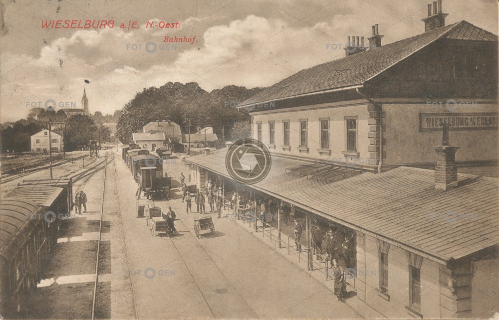 1916 alive Austria Ausztria Bahnhof budova Dolní Rakousy doprava dráha dvoukolák Erlauf místopis nádraží nádražní nástupiště Niederösterreich Österreich peron platform Rakousko stacja kolejowa station topography transport trať vasútállomás Wieselburg železnice železniční živá