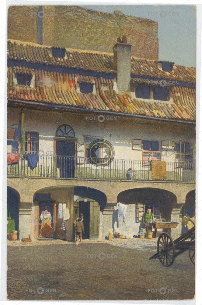 1910 alive art colored courtyard house kolorovaná loggia house místopis nádvoří domu pavlač pavlačový dům Prague Praha praní Renaissance renesance topography U staré školy umění washing živá