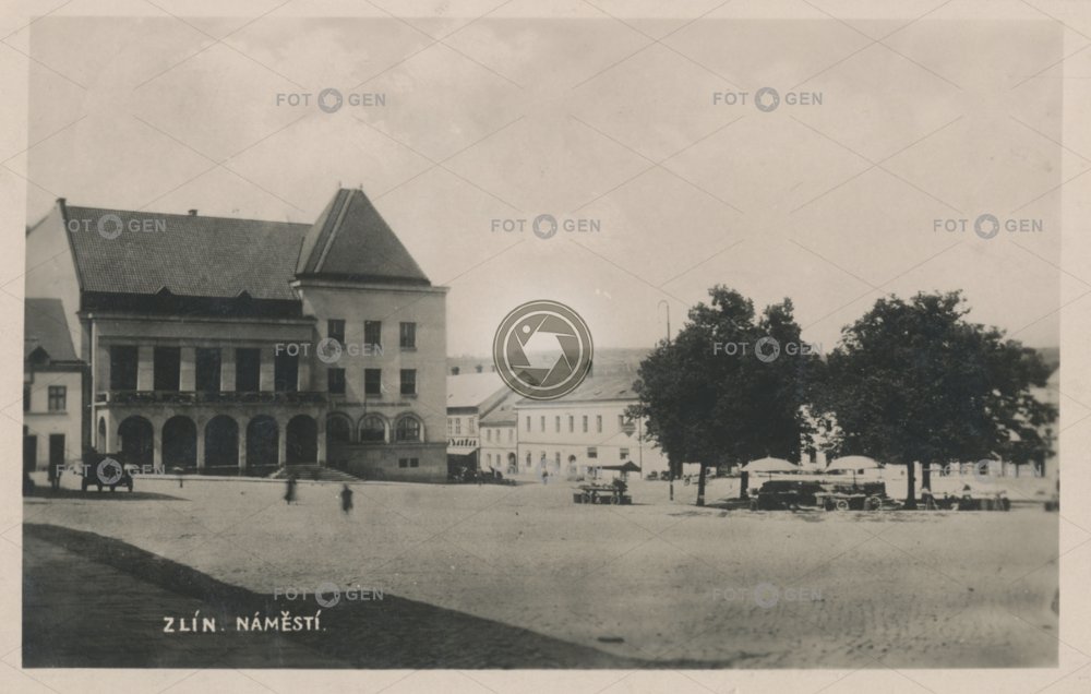 1927 Bartošova Baťa fontána fountain kašna market Míru místopis náměstí Míru neexistující neexistující budova neexistující objekt neexistující stavba non-existent non-existent building obchod radnice topography town hall trh trhovci tržiště tržnice Zlín