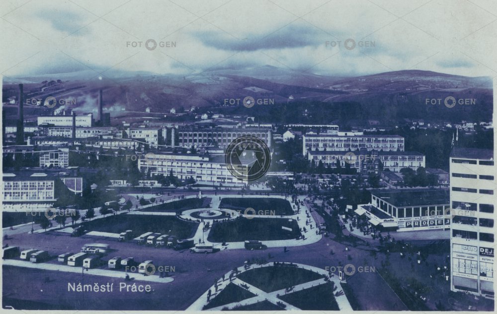 autobus autobusové nádraží bus bus station factory fontána fountain kašna místopis nádraží náměstí Práce práce railway station stanice station topography továrna tržnice zastávka Zlín
