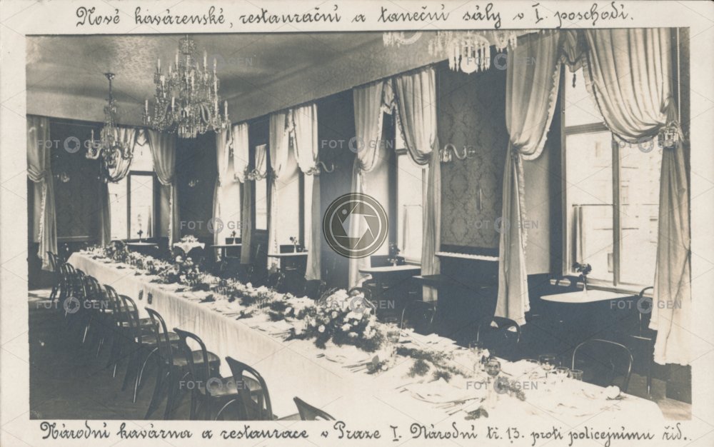 cafe equipment furniture hospoda hostinec hotel Thalia chair chandelier interiér interior kavárna leisure lustr místopis nábytek Národní Prague Praha pub restaurace saloon seat stoly table tabule topography třída volný čas vybavení židle