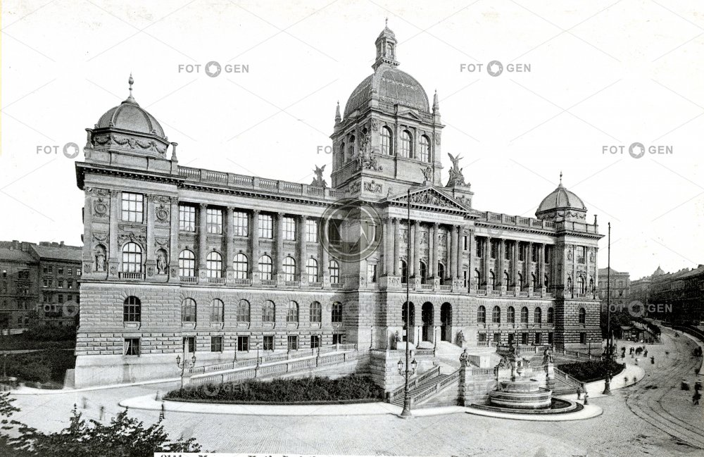 dome facade fontána fountain horse tram track kolej koňky kupole Místopis Praha museum Museum království českého Museum of the Kingdom of Bohem muzeum Neo-Renaissance novorenesance průčelí Schulz Topography Prague Václavské náměstí Wenceslas Square