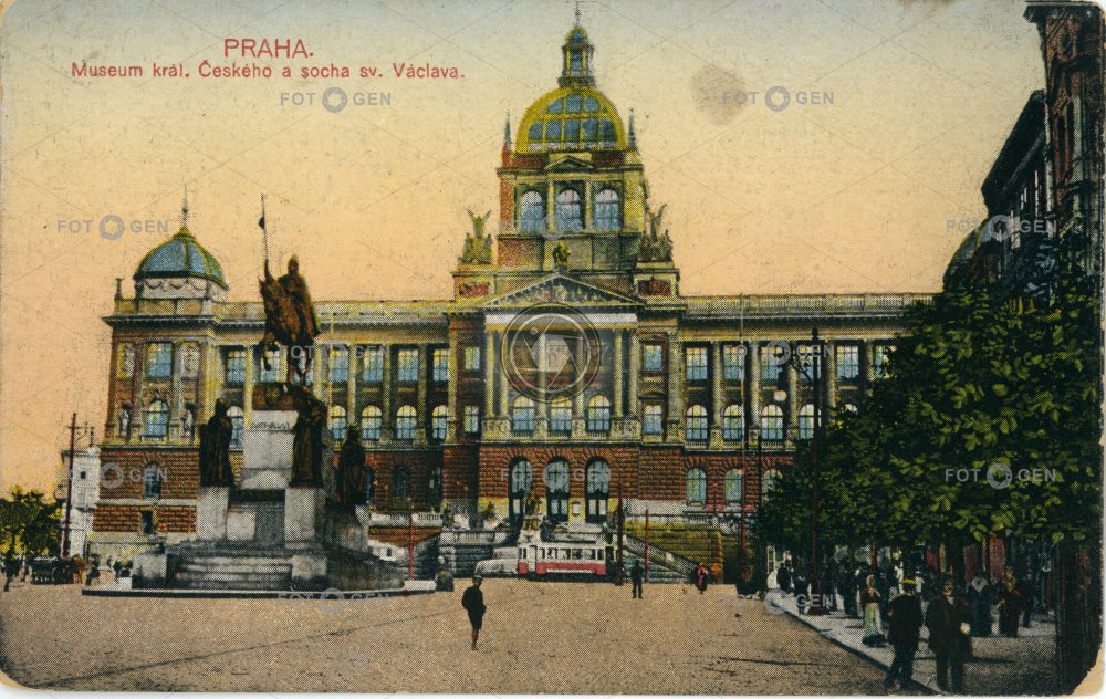 barevná color colored kolorovaná Koňský trh místopis Národní muzeum New Town Nové Město novorenesance Prague Praha sculpture socha statue svatého Václava topography Václavské náměstí Wenceslas Square