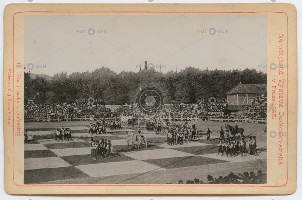 diváci exhibition fairground game historie history hra human chess chess chess outdoors královna leisure lidské šachy místopis pawn pěšák Prague Praha queen spectators sport šachy šachy venku topography volný čas výstava výstaviště