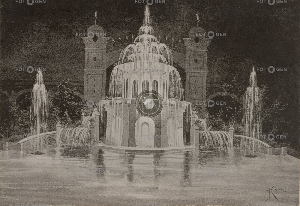 Arts drawing Ethnographic exhibition fountain Industrial Palace kresba leisure light fountain Národopisná Pavel Körber Prague Praha Průmyslový palác světelná fontána umění vodotrysk volný čas výstava