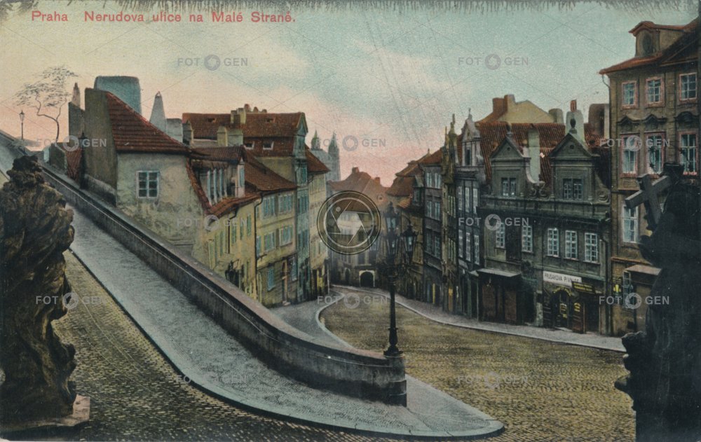 barevná bránické cesta colored dům King's path kolorovaná Královská Královská cesta Lesser Town Malá Strana místopis Nerudova Prague Praha The Lesser Town topography U tří červených křížků ulice