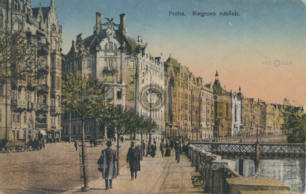 1919 alive barevná colored electric houses elektrické domy embankment kolorovaná lávka Masarykovo místopis nábřeží Prague Praha Riegrovo St Adalbert’s Quarter topography živá