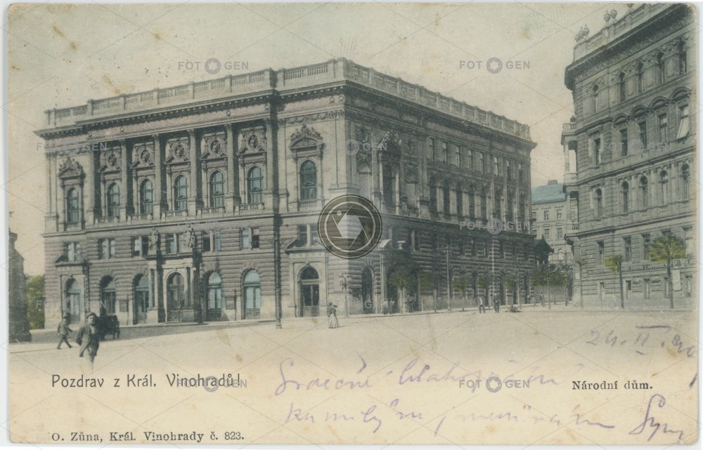 barevná colored kolorovaná Královské Vinohrady Míru místopis národní dům National House Neo-Renaissance novorenesance Prague Praha Royal Vineyard Royal Vineyards topography Vinohradské Vinohrady