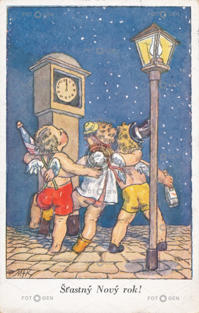 anděl angel celebration engel Feier Feiertage holidays Christmas kreslené leisure malované midnight Mitternacht novoroční nový rok oslava prvorepublikové přání půlnoc sváteční svátky vánoce vánoční volný čas Weihnachten