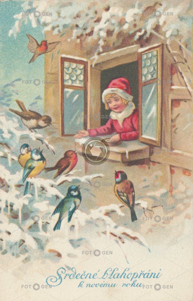 animal / bird birds děti dítě dívka Feiertage girl holčička holidays holka child Christmas Kind kreslené leisure Mädchen malované novoroční nový rok prvorepublikové přání ptáci sváteční svátky sýkora tit vánoce vánoční volný čas Weihnachten zvířata