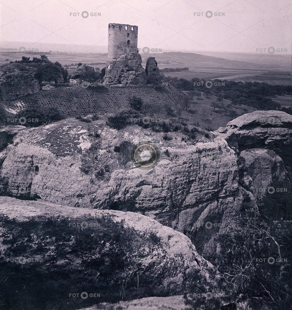 Obec Boseň, hrad Valečov,  polovina stereofotografie Autor: neznámý